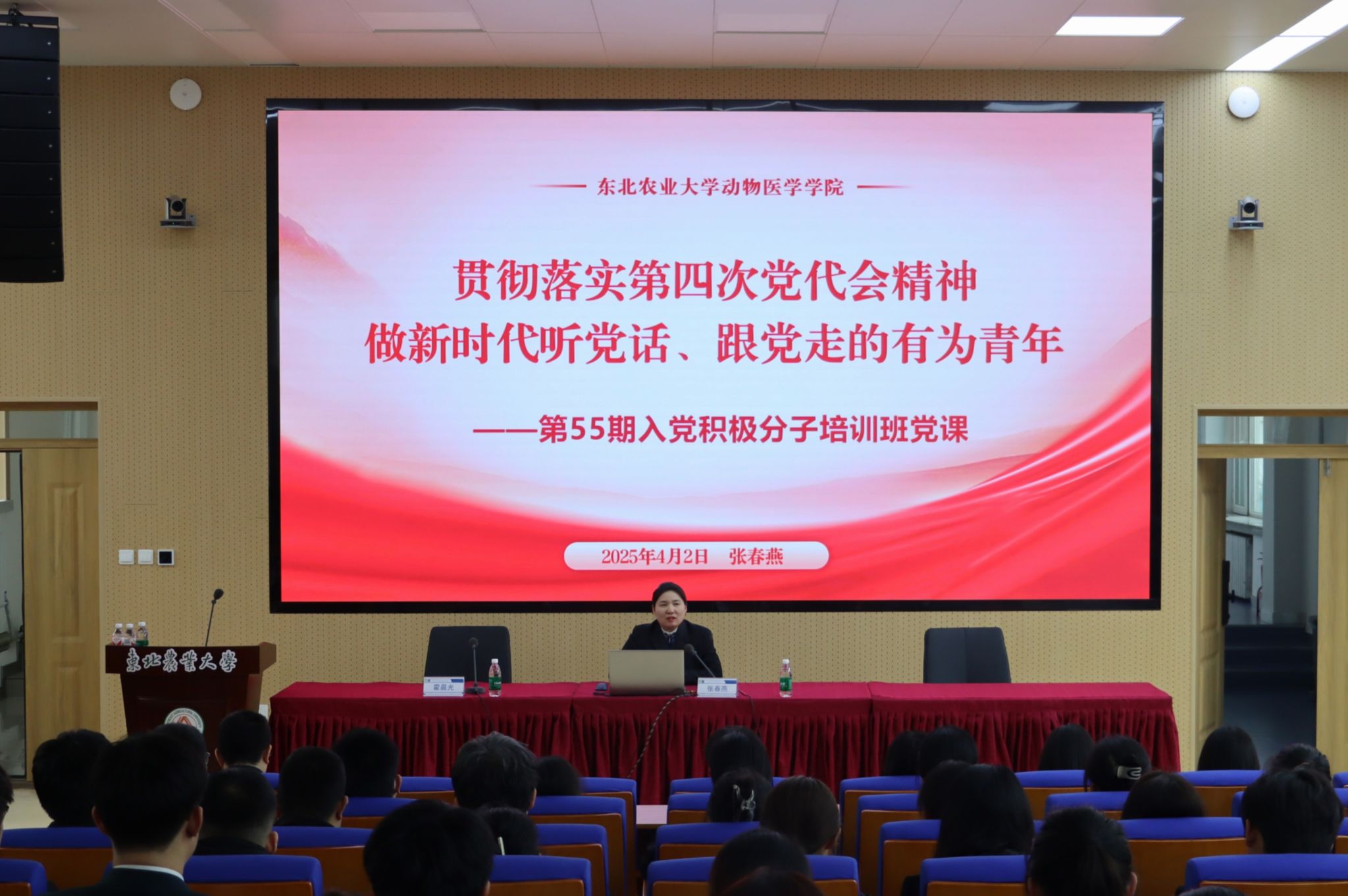 学院党委书记张春燕以《贯彻落实第四次党代会精神,做新时代听党话、跟党走的有为青年》为题,围绕学校第四次党代会精神,紧密结合青年成长与时代使命,为学员讲授了一堂深刻的专题党课。她深刻阐释了学校第四次党代会的重大意义、核心议题、奋斗目标、战略部署和行动路径等,并希望学员们能够做到学深悟透,争做党代会精神传播者、改革发展实践者、民族复兴追梦人。并对学员们提出四点要求与期待,一是以理想照亮前行的路,做到“眼中有光”;二是以担当彰显初心使命,做到“肩上有责”;三是以吃苦锻炼过硬本领,做到“手上有招”;四是以奋斗书写青春答卷,做到“脚下有路”,奋力书写“东农发展,动医何为”的时代答卷,为实现世界一流大学建设目标和中华民族伟大复兴贡献青春力量。寄语青年学子,要以伟大建党精神为指引,深入落实学校第四次党代会精神,践行“请党放心,强国有我”的青春誓言,勇担时代赋予的使命,主动投身科研攻关、乡村振兴一线磨砺本领,以实干书写青春答卷,用奋斗诠释青春价值。