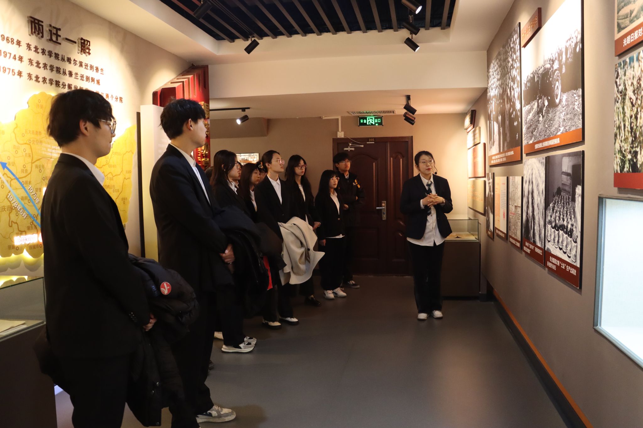 学院党委组织全体学员参观校史馆,开展“知校史、明校情、铸校魂”党建特色教育活动。学员们跟随讲解员的生动讲述,从一幅幅珍贵的历史图片、一件件厚重的实物展陈中,重温学校扎根黑土地、服务“三农”事业的奋斗历程。从建校初期的筚路蓝缕,到新时代建设“双一流”高校的砥砺奋进;从老一辈科学家的科研报国故事,到近年来学校在科研领域的重大突破,学员们追寻校史足迹,感悟使命担当,深刻感受到“艰苦奋斗、自强不息”的东农精神,纷纷表示要将个人理想融入学校发展和龙江振兴的大局中。