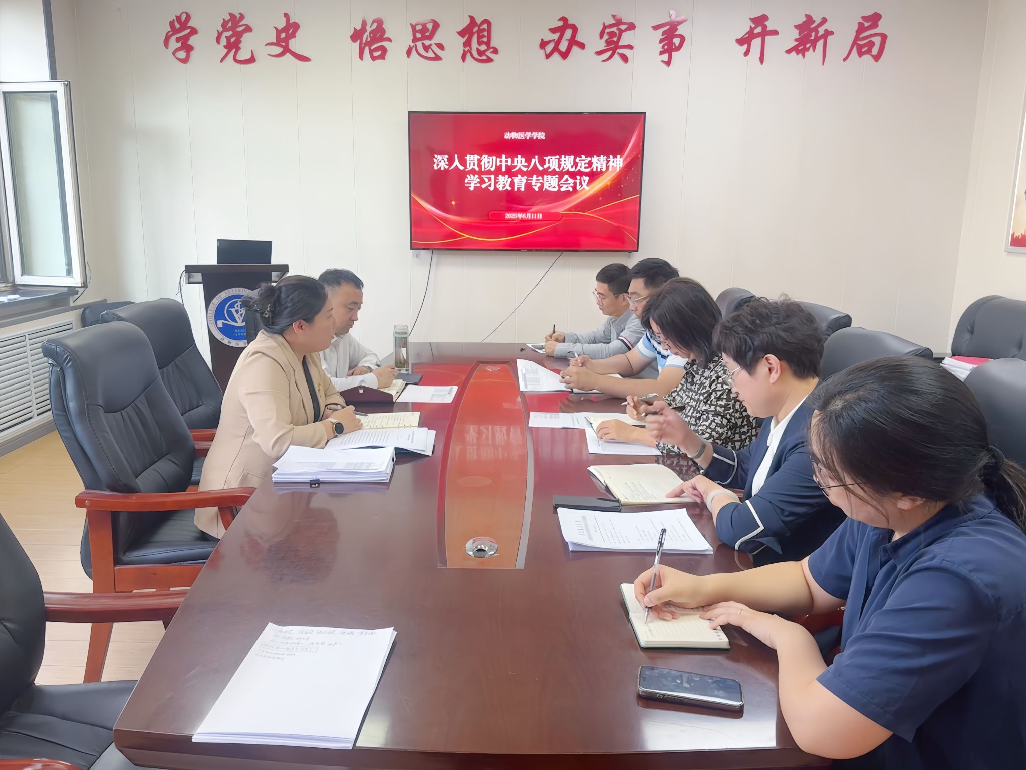 6月11日下午,伟德betvlctor1946深入贯彻中央八项规定精神学习教育专题会议在牧医楼202会议室召开,学院全体领导班子成员、党委委员、纪委委员、部分党支部书记参加会议。会议由学院党委书记张春燕主持。