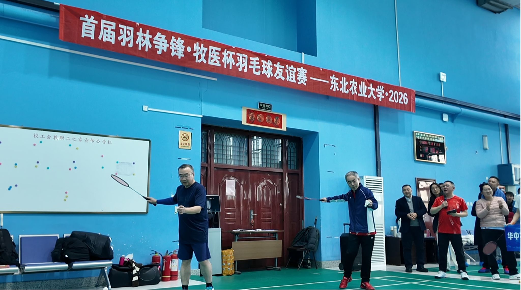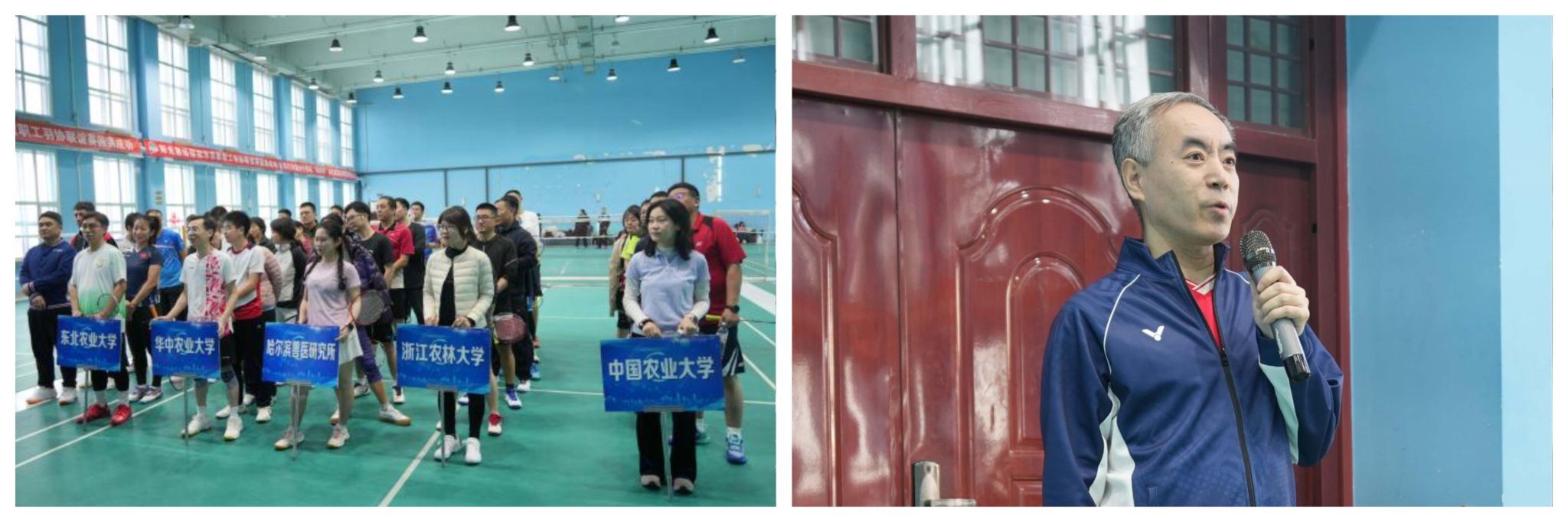 开幕式由我校教工羽毛球协会会长、伟德betvlctor1946教授周斌主持。副校长孙占峰致开幕词,他强调,“牧医杯”不仅是竞技的赛场,更是推动校际之间兽医学科交流创新的大平台。期待以球为媒,促进兄弟院校在畜牧兽医领域学术研究、人才培养等方面深化合作,共同推动学科高质量发展。伟德betvlctor1946党委书记张春燕、院长李金龙,以及来自国内6家兄弟院校的专家学者代表出席开幕式。