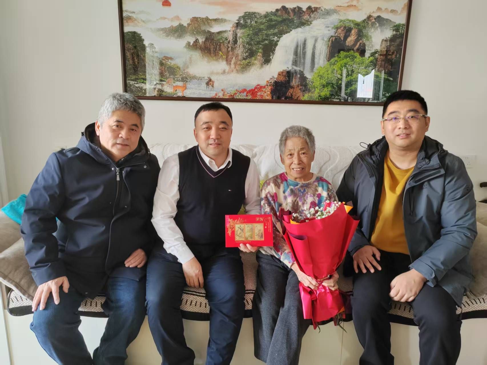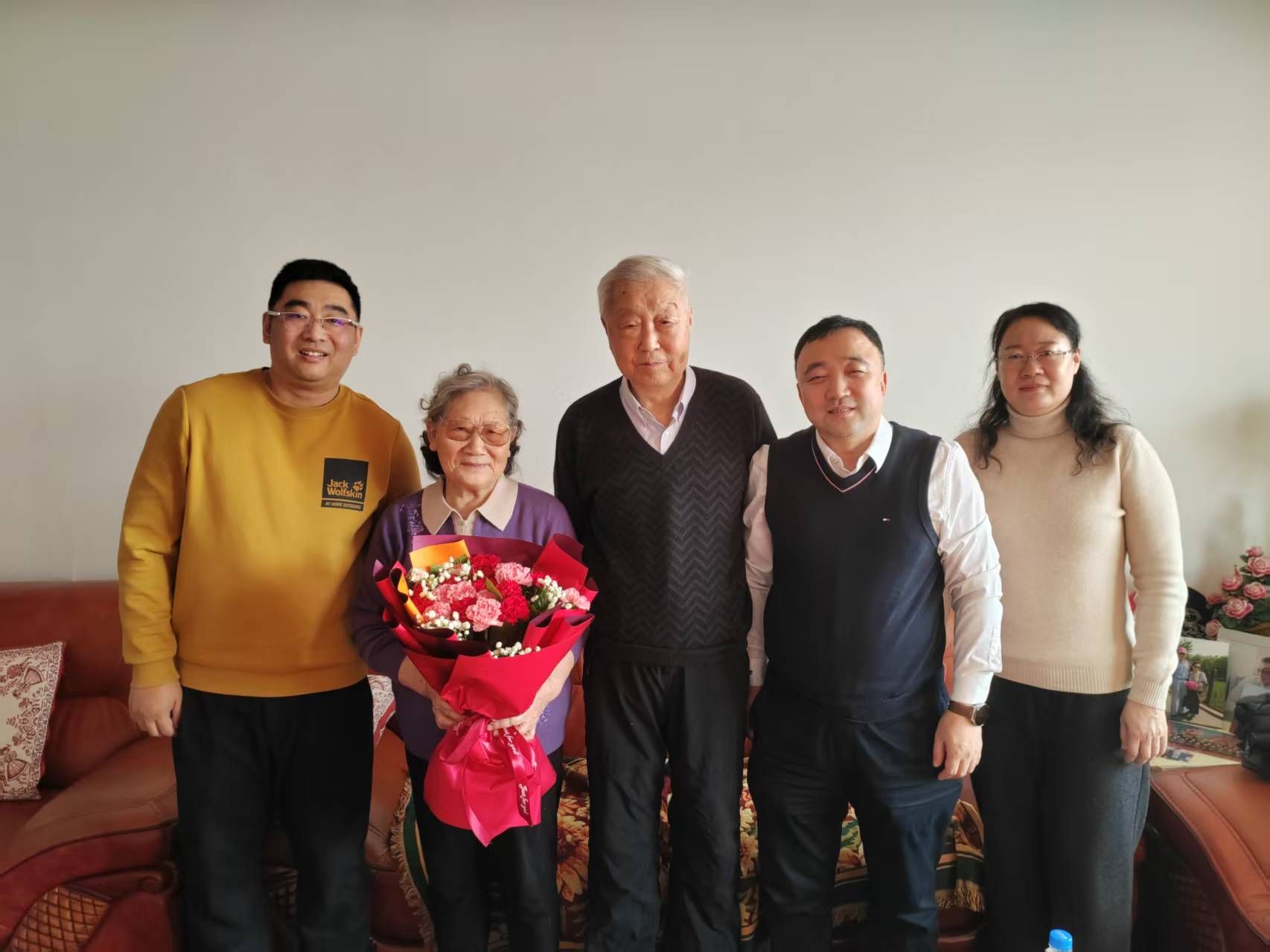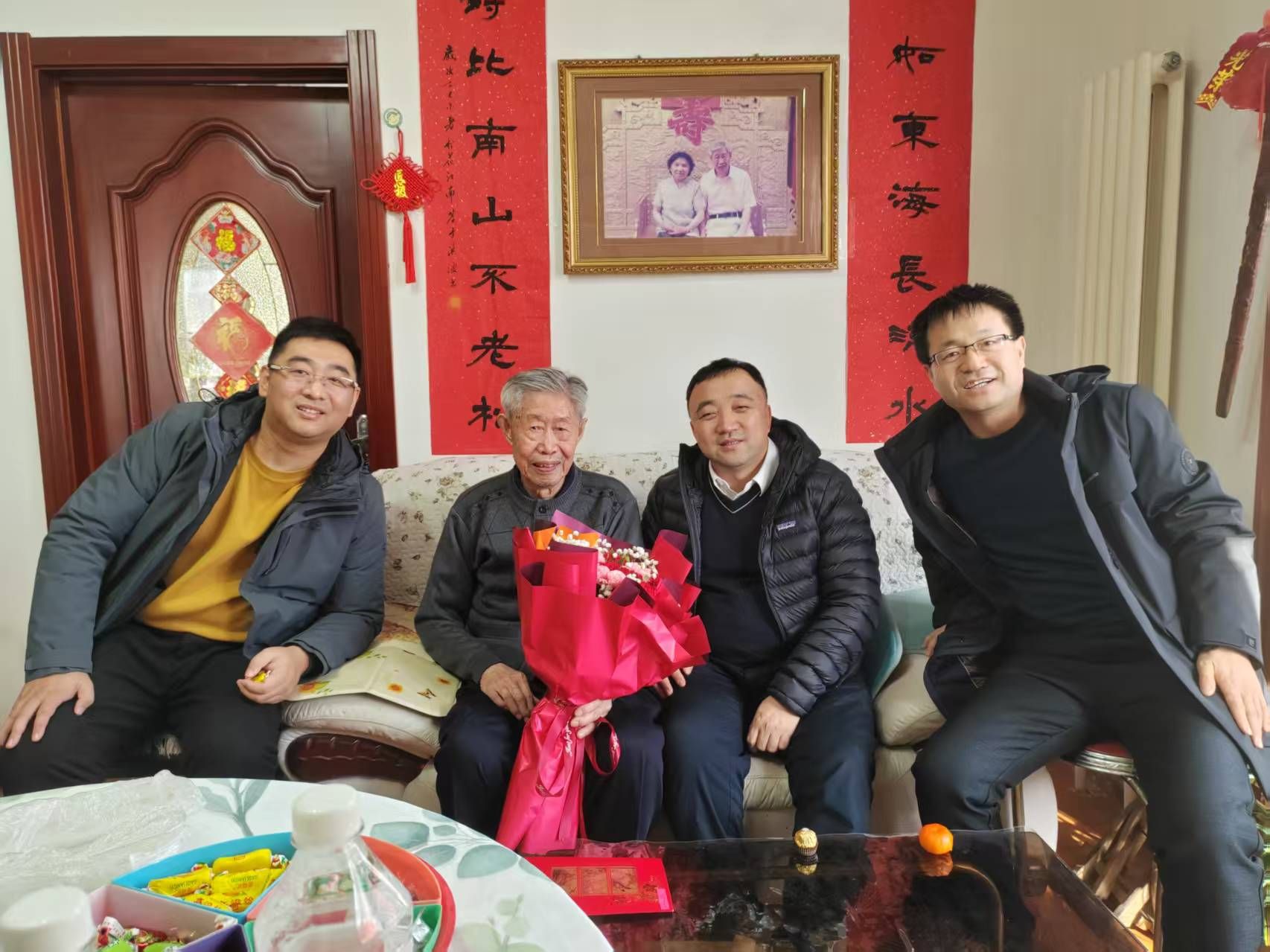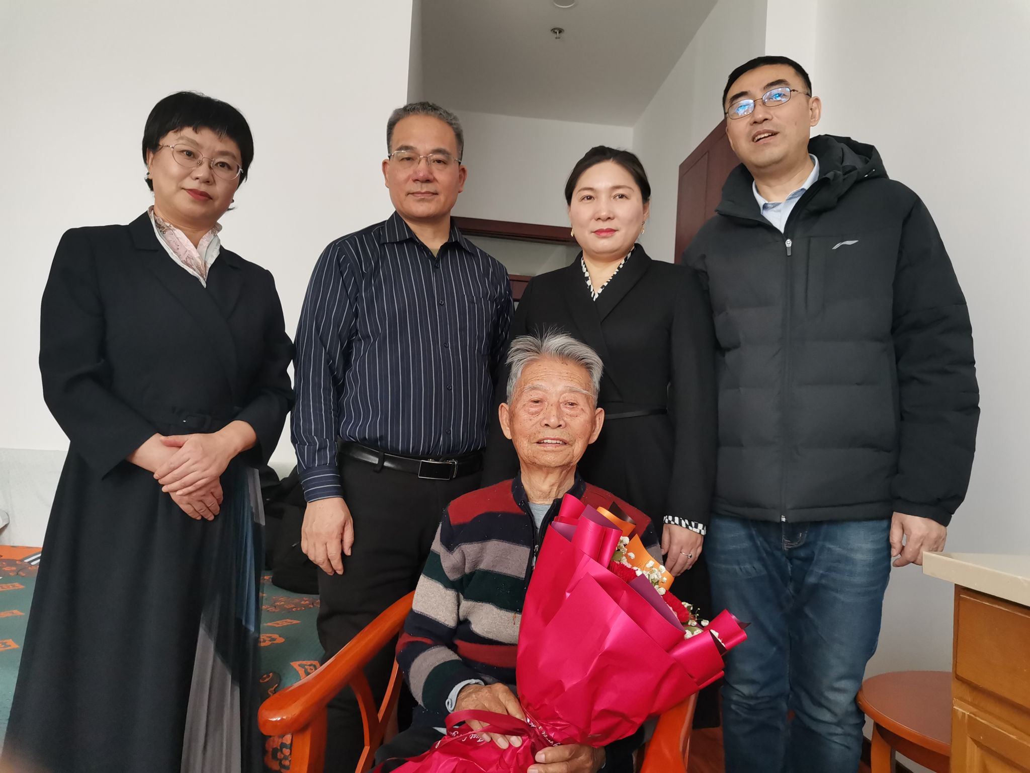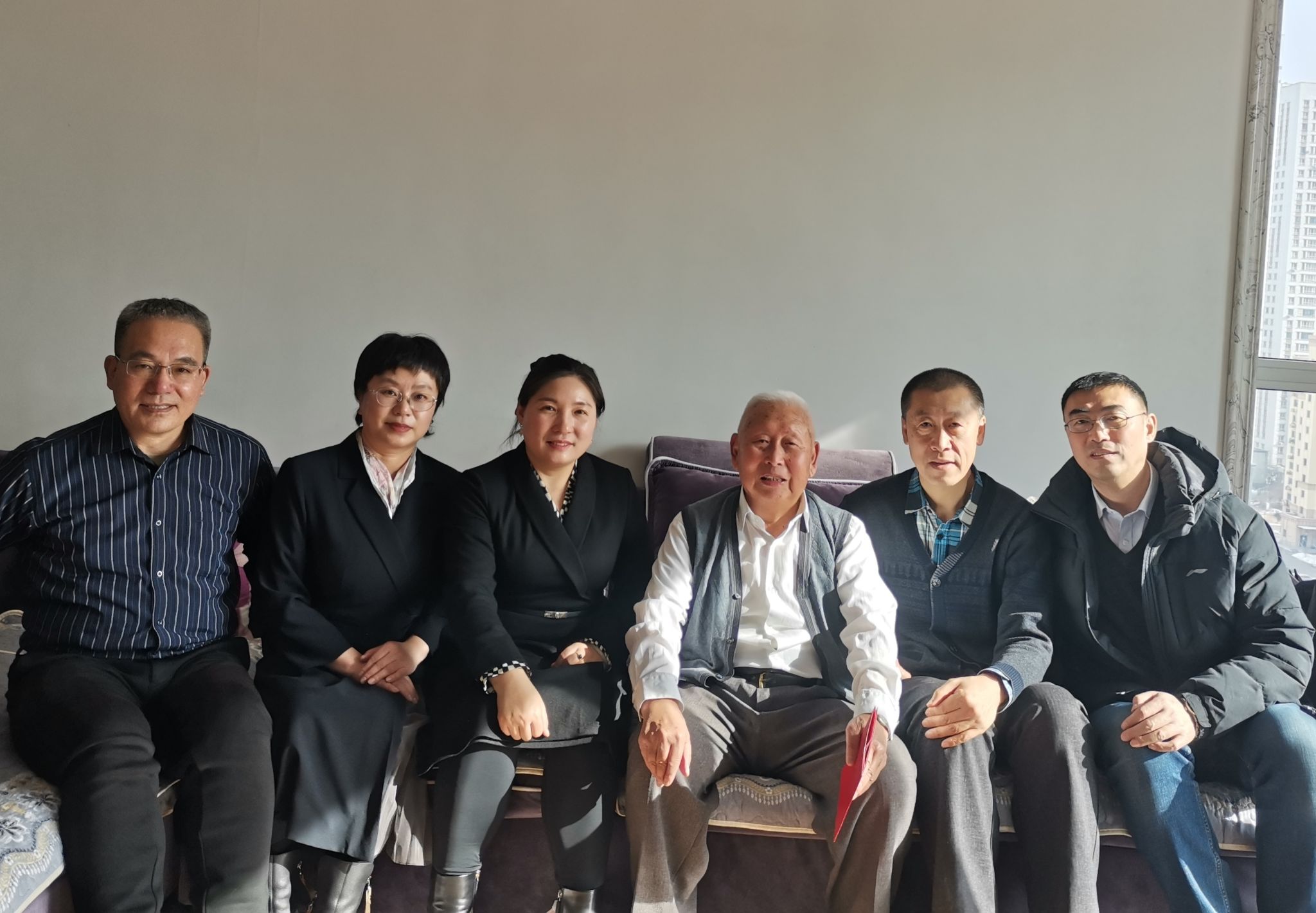 交流中,教师代表与老先生们一同重温杏坛执教岁月,共忆学院发展历程,畅叙深厚师生情谊与同门情怀。大家认真倾听老先生们结合自身执教经历,对学院学科建设、人才培养、青年教师成长等方面提出的宝贵意见和建议,老同志们心系母院、深耕教育的赤诚之心令人动容。慰问现场,学院领导为老先生们献上鲜花和慰问品,与老同志们合影留念,定格下温馨和睦的瞬间,让老同志们在寒冬中感受到学院大家庭的温暖。